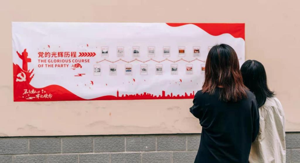 (学生正在查看党史学习张贴海报)