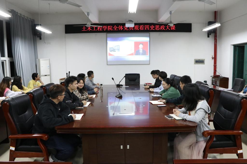 5月23日晚,土木工程学院党总支组织全体学生党员和发展对象分别在理工楼A303、园区党建活动室2个场地观看了新时代大型融媒党史学习教育节目《全国大学生同上“四史”思政大课》。