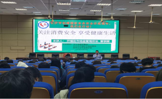 19日晚,后勤处邀请开福区市场监督管理局“明星所长”章学辉在致远楼学术报告厅为我校学生作题为“关注消费安全,享受健康生活”的知识讲座,现场同学们积极互动。