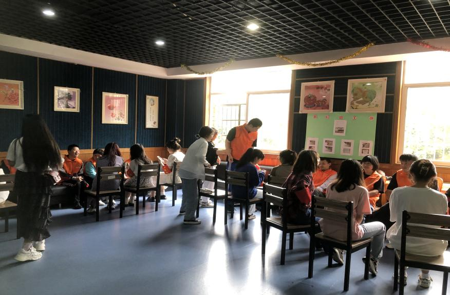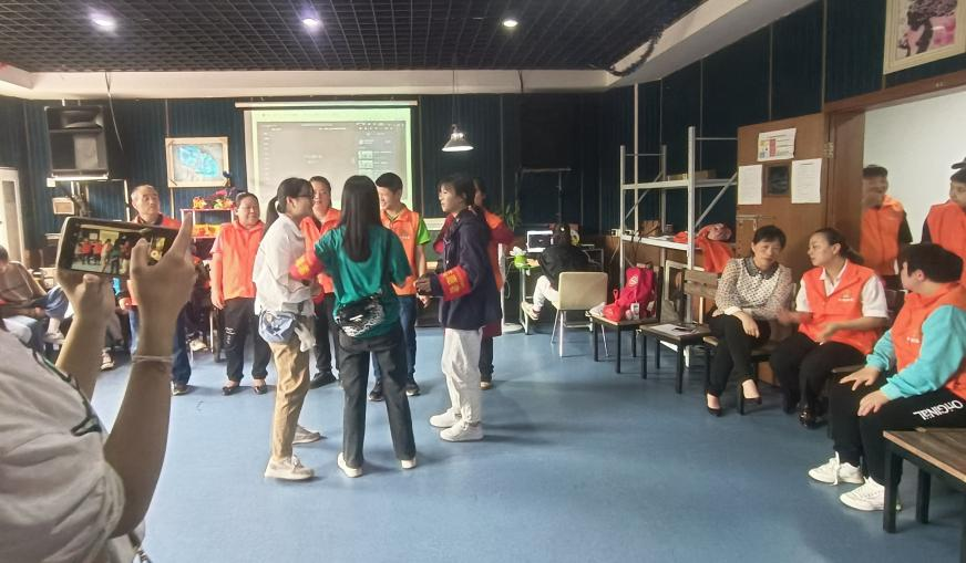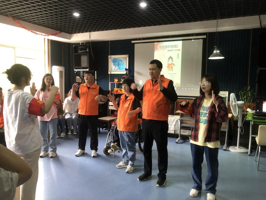 活动期间,在谭祝平老师的带领下,同学们分组与园友们进行一对一的“我和我的祖国”手指健身操教学,并通过趣味比赛的形式将教学成果再次展现出来。