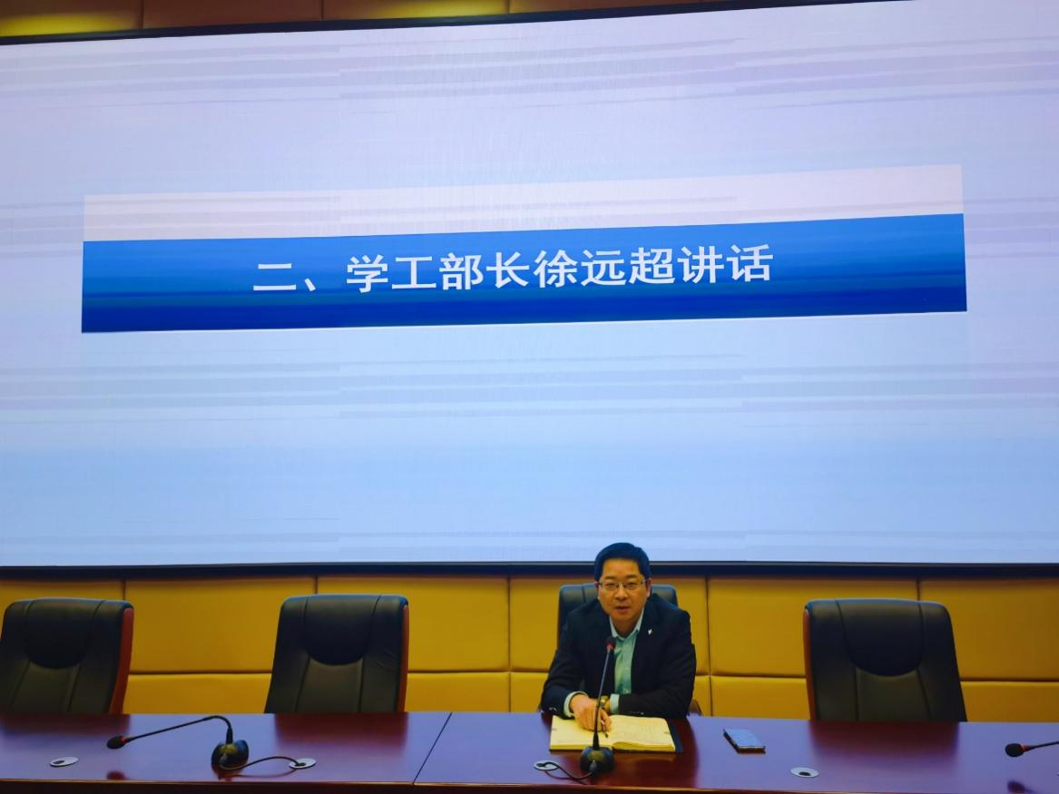 党委学生工作部长徐远超从严坚守守疫情防控的防线、牢牢守住意识形态的红线、筑牢学生生命安全的底线、确保心理健康教育不松懈以及重视辅导员成长发展五个方面明确本月工作重点,为各项工作的推进做了统筹部署。心理健康教育中心主任段思岚针对新生心理普查等重要工作进行具体布置,并对上个月的心理工作督查情况进行了通报。