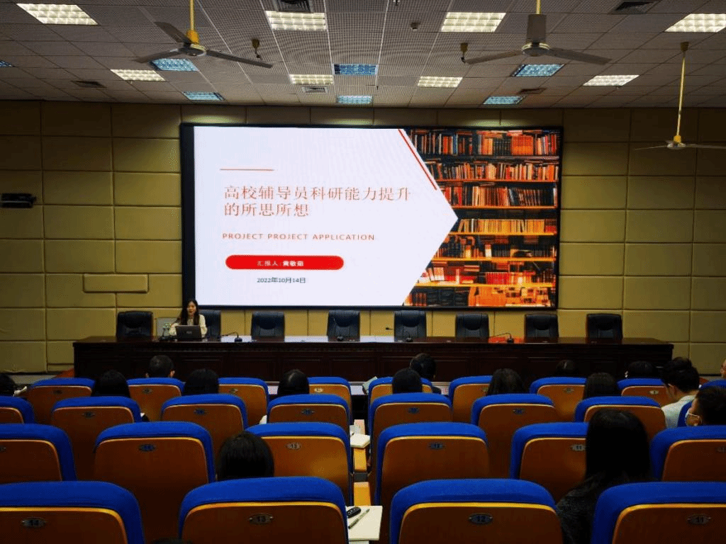 学习提升是每次例会的重要内容。“提高科研能力,是落实习近平总书记有关教育重要论述的需要。”今年成功立项教育部人文社科项目的经管学院辅导员黄敬茹,以“高校辅导员科研能力提升的所思所想”为题,在会上作专题分享。黄敬茹从高校辅导员为什么需要提高科研能力、高校辅导员应具备的科研素养与课题申报的一些感想与体会三个方面交流了自身在科研工作方面的成长过程,并分享了“课题立项三大宝”,为辅导员队伍科研能力的提升提供了宝贵的经验。