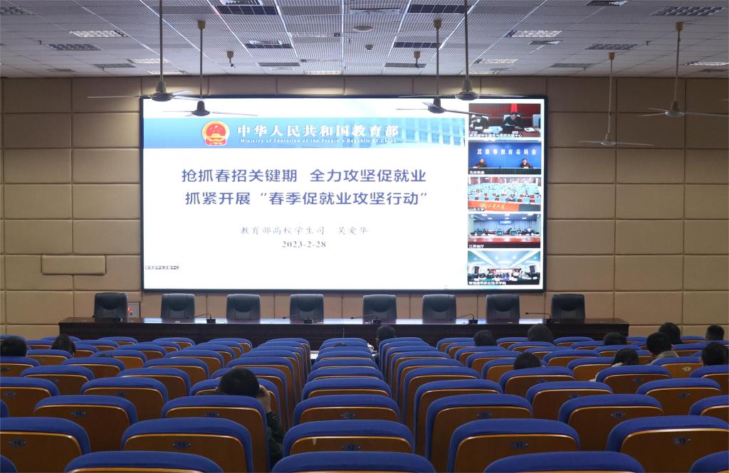2月28日下午,为深入贯彻党的二十大精神,认真落实党中央、国务院“稳就业”“保就业”决策部署,全力促进高校毕业生顺利就业尽早就业,教育部召开了2023届全国普通高校毕业生就业工作第二次视频调度会议。教育部高校学生司司长孙海波、副司长吴爱华出席会议并讲话。我校在致远楼学术报告厅设分会场,副校长陈世平出席,学生处、保卫处、教务处、招就处、团委主要负责人,各二级学院党总支书记、院长、就业专干等参加会议。
