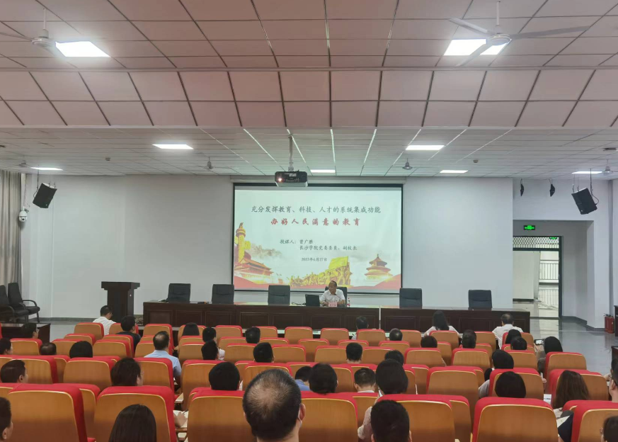 6月27日下午,党委委员、副校长曾广胜以“充分发挥教育、科技、人才的系统集成功能,办好人民满意的教育”为主题,在长智楼C501为机关六支部、生物与化学工程学院、机电工程学院的党员教师讲授主题教育专题党课。党课由机电工程学院党总支书记张海涛主持。