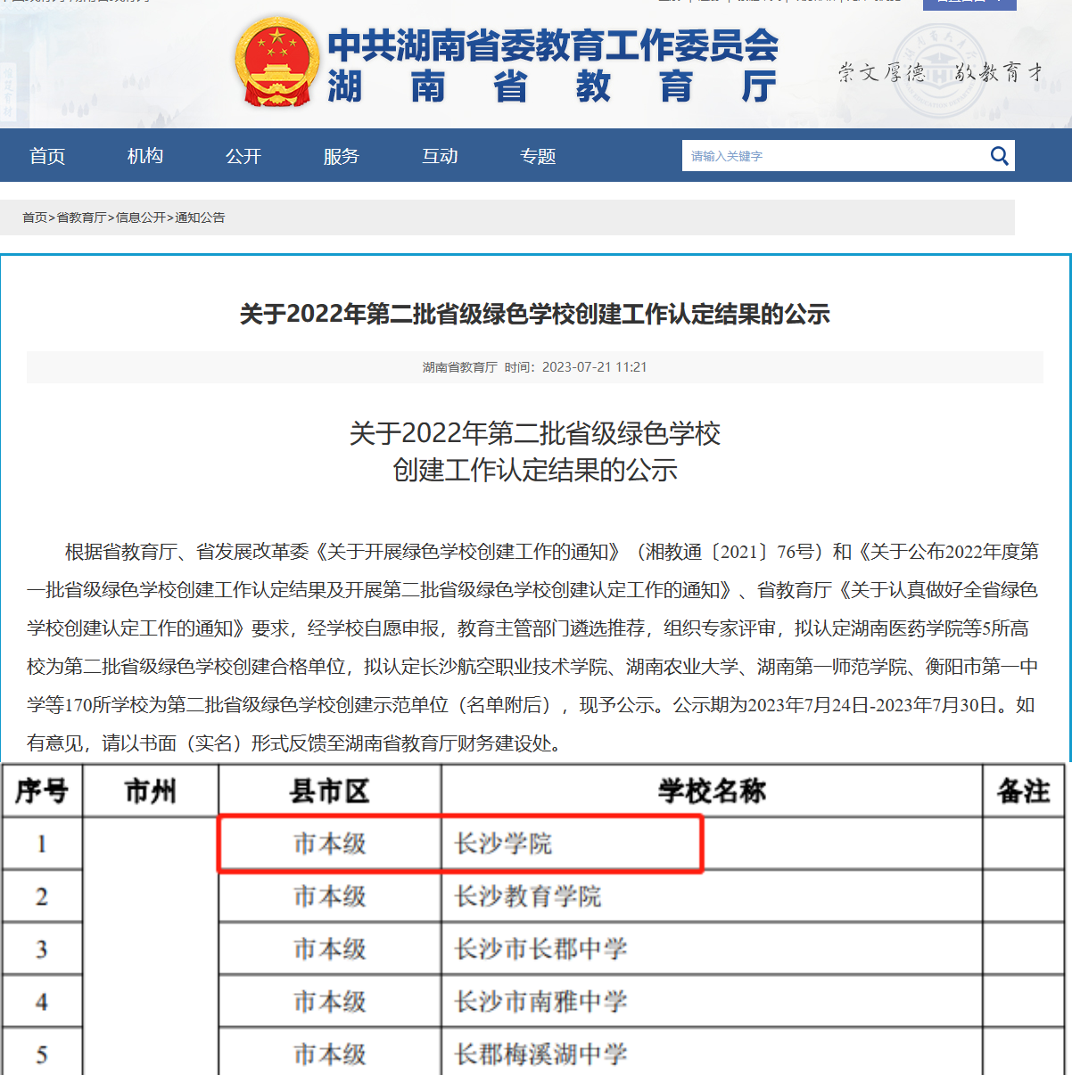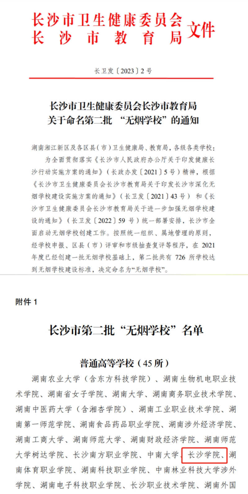近日,湖南省教育厅、湖南省发改委发布了2022年第二批省级绿色学校创建工作认定结果的公示,我校获批湖南省绿色学校创建示范单位。与此同时,长沙市卫健委、长沙市教育局公布了长沙市第二批“无烟学校”名单,我校被命名为“无烟学校”。这是学校深入贯彻落实习近平生态文明思想的重要体现,是学校扎实推进校园生态文明建设取得的重要成果。