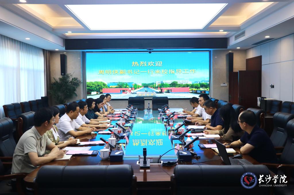 9月18日下午,长沙师范学院党委副书记周明侠一行来我校调研交流。党委副书记刘寒波、副校长何利华出席座谈会,两校相关职能部门主要负责人参会。会议由刘寒波主持。