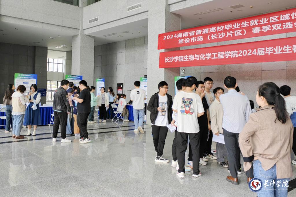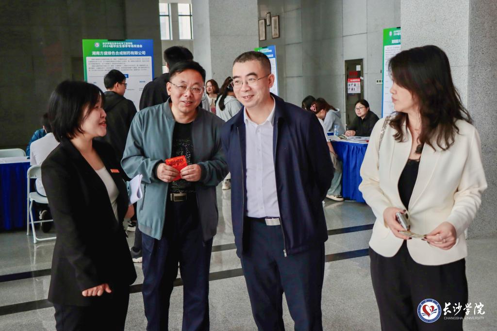 “我们与生物与化学工程学院建立了长期战略合作关系,在人才培养、科学研究与成果转化等方面均有深入合作,希望通过本次双选会能聘得良才,为我省大健康产业建设共谋良策。”前来参加双选会的企业代表湖南天劲制药责任有限公司人力资源负责人吴淼表示。