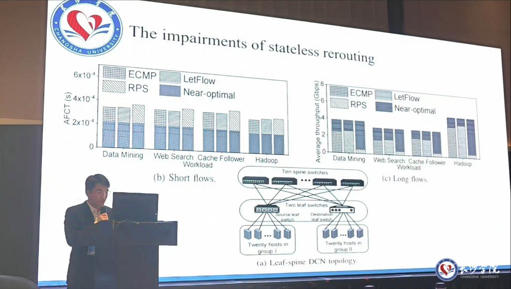 据了解,我校本科21级计科4班王雨晨、21级计科1班李振博和22级物联2班敬淏天撰写的科研论文《Leveraging Packet Cloning to Achieve Fast Flow-Transmission for Data Center Load Balancing》由我校李方敏、张韬、栾悉道3位老师共同指导,并被计算机并行和分布式计算领域国际会议(中国计算机学会CCF推荐C类会议)所录用。3位同学分列该论文的第一、二、三作者,长沙学院为第一署名单位。其中,王雨晨以第一作者身份在会上作了分组报告。