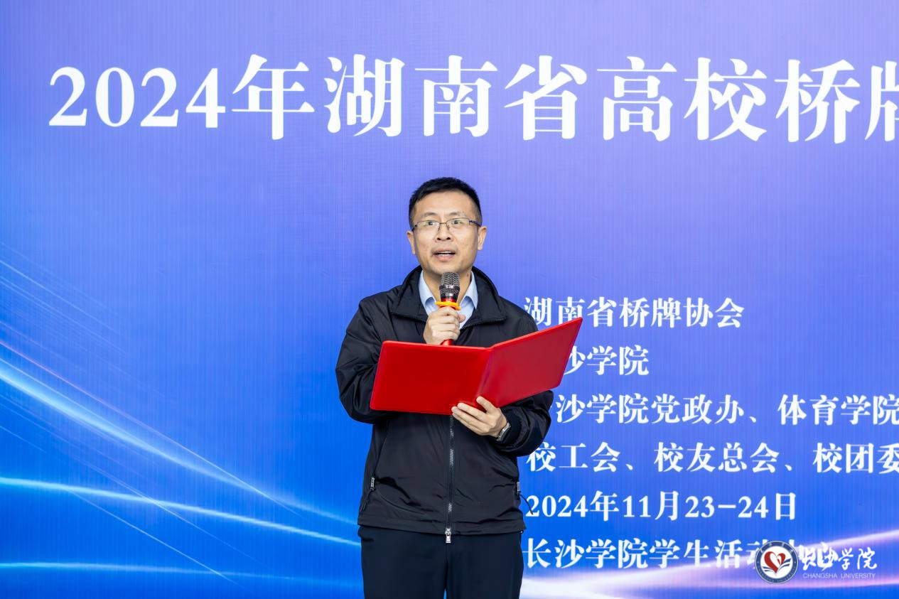 (湖南省桥牌协会副主席兼秘书长王跃武主持开幕式)