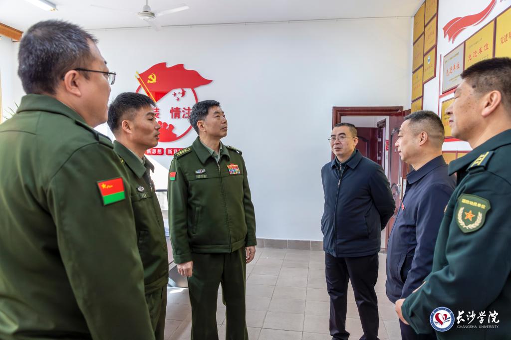 11月28日上午,长沙警备区汪立生一行来校调研武装部规范化建设工作。学校党委委员、副校长何利华陪同调研。