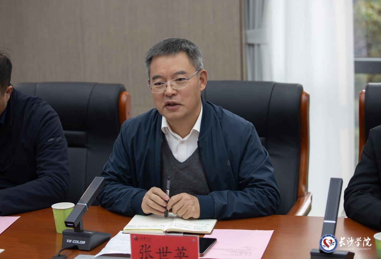 张世英对江汉大学的热情接待和在工作上提供的支持帮助表示感谢。他指出,江汉大学与长沙学院的管理体制相同,发展历程相似,江大的改革发展在应用型本科院校中具有领先性和示范意义,长沙学院教育教学相关部门将认真学习消化江汉大学教育教学的宝贵经验,加紧追赶步伐,突出内涵发展、创新发展和特色发展。