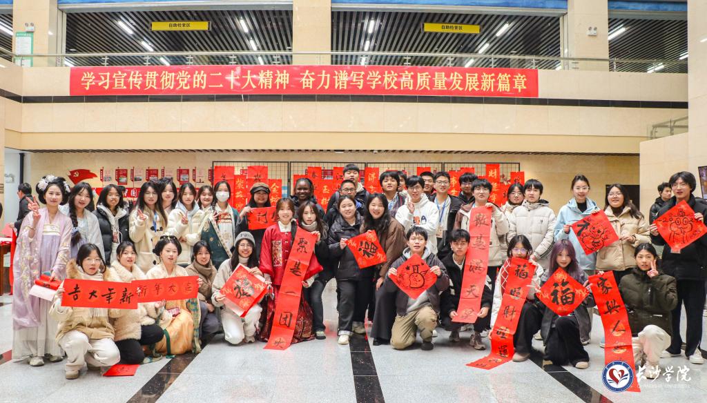 龙狮协会两支灵动的祥狮在激昂的鼓乐声中用灵动矫健的身姿,舞出新春的欢腾与活力,也为活动拉开了序幕。省内书画名家王元建、陈炼、柳玉、张建龙四位教授及黄慧瑾、朱洁华、卿旭峰等老师受邀前来,现场挥毫泼墨,用春联和画扇把美好的祝福送给现场师生。活动当天还吸引了多位留学生参与,近五百位师生现场品味煮茶雅趣,体验书画墨蕴,镌刻剪纸意趣,参与投壶竞技,展示汉服之美,共同感受着浓浓的“中国味”。
