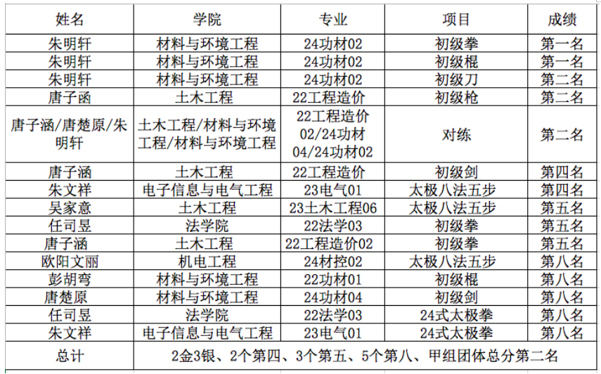 近年来,我校师生多次参加全国和省级的体育赛事,在赛场上频频摘金,彰显了长大人奋发向上的精气神和追求卓越的体育精神。体育学院将继续加强中华民族传统体育与高校体育的融合,强化人才培养质量,培养更多优秀竞技体育人才,为弘扬优秀传统文化和中华体育精神贡献长大力量。