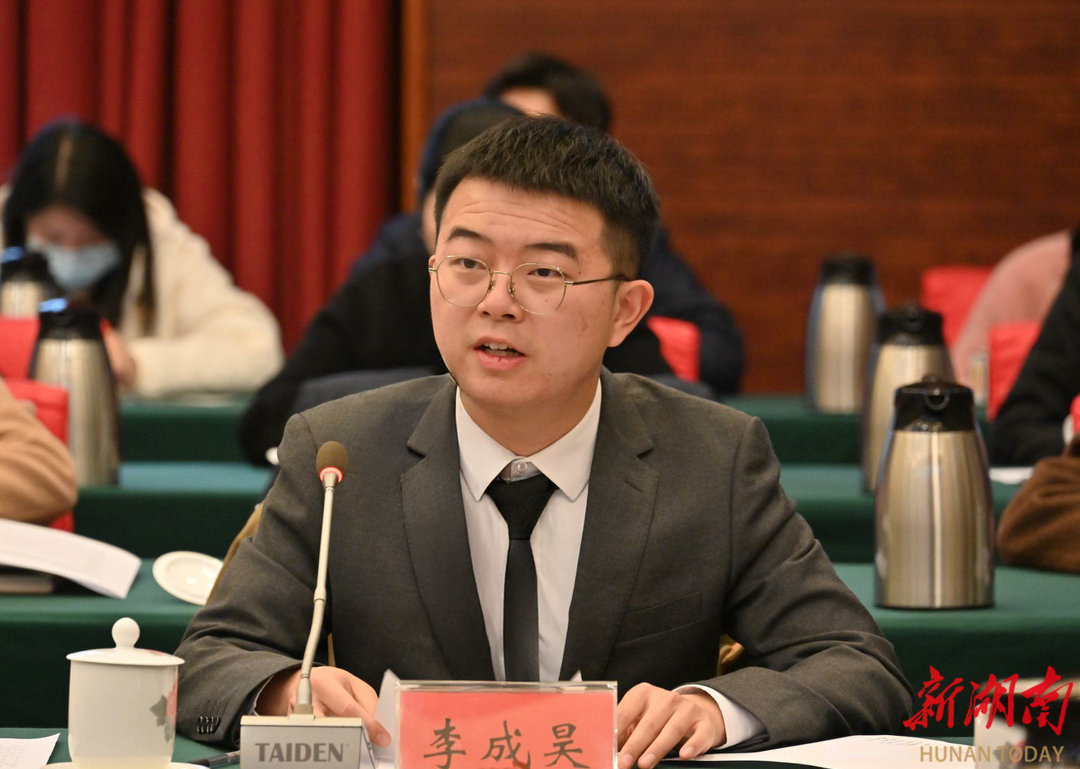 1月8日上午,2025年湖南省“共青团与人大代表、政协委员面对面”座谈会在长沙召开,围绕“支持大学生创业工作,助力对年轻人友好省份建设”主题进行研讨。共青团湖南省委书记李志超主持座谈会,省政协副主席潘碧灵出席,我校优秀创业导师电子信息与电气工程学院杨丞和创业优秀学生李成昊参会并作为代表发言。