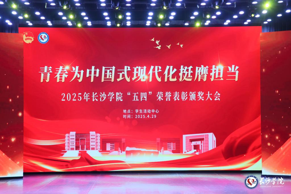 “以青春赴万丈理想……我的样子就是中国的模样!”青春洋溢的铮铮誓言化作铿锵的旋律回荡在长大夜空。4月29日晚,长沙学院2025年“五四”荣誉表彰颁奖大会在学生活动中心举行。党委委员、副校长何利华出席大会并讲话,相关职能部门负责人,各二级学院党总支书记、副书记、团总支书记、获奖师生代表等近500人参加活动。