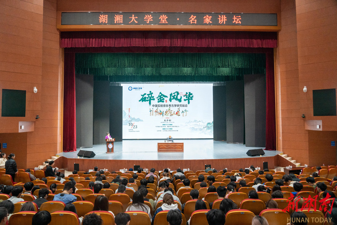新湖南客户端10月24日讯(通讯员 徐君玲 张轩豪)10月23日,由中共湖南省委宣传部、湖南省社科联联合主办,长沙学院、长沙学院音乐舞蹈美育传承基地承办的2025年第2期湖湘大学堂·名家讲坛在长沙学院开讲。本期活动特别邀请我国音乐考古学领域的权威学者、中国矿业大学特聘教授、中国音乐史学会名誉会长王子初教授担任主讲人,以《碎金风华——中国实验音乐考古学研究纵论》为主题进行授课。省社科联党组成员、副主席、秘书长(兼)贺建湘,长沙学院党委委员、副校长阳王东参加活动。省社科联干部代表、长沙市社科工作者代表、市民代表与长沙学院师生近千人现场聆听。