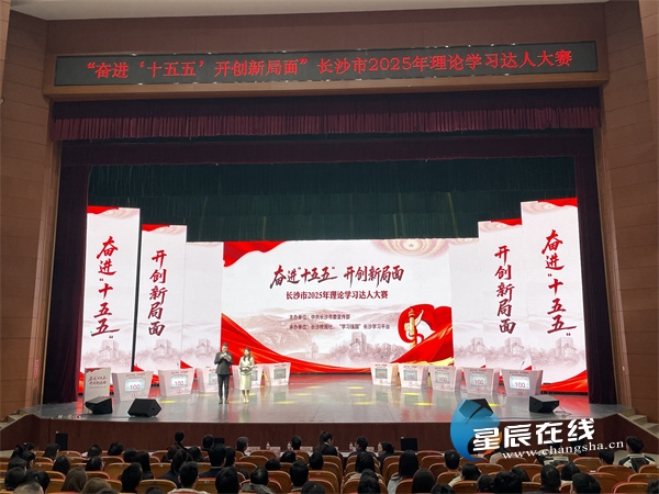 星辰在线12月30日讯(星辰全媒体记者 郭凤湘)12月30日上午,长沙学院大礼堂内掌声雷动、氛围热烈,“奋进‘十五五’开创新局面”长沙市2025年理论学习达人大赛决赛在此举行。来自全市的10支代表队同台竞技,以赛促学、以学促干,生动展现了长沙党员干部群众深学细悟党的创新理论、踔厉奋发迈向新征程的精神风貌。