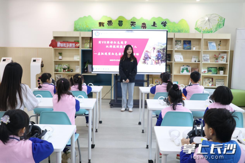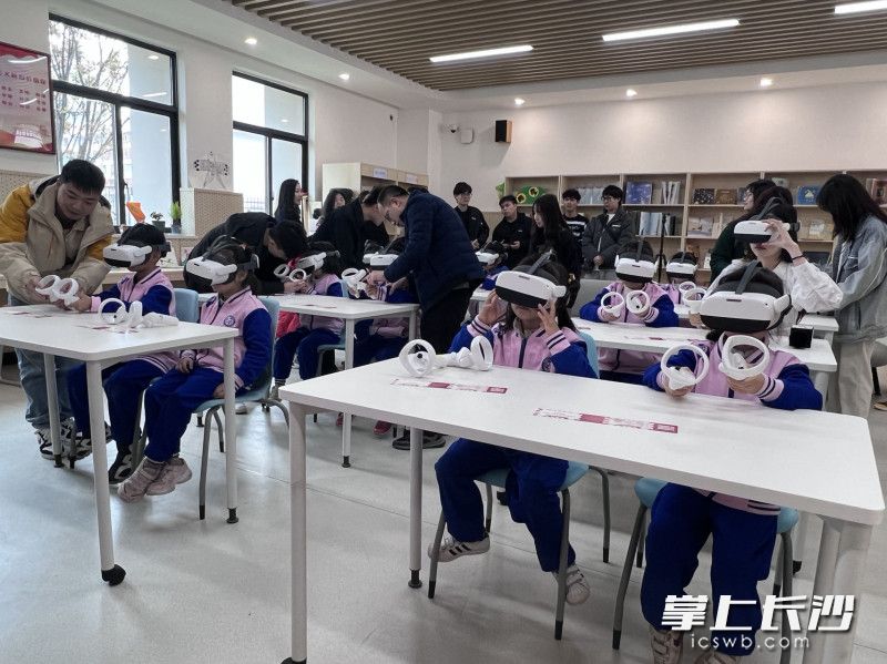 长沙市实验小学马栏山文创学校学生体验VR雷锋数字展馆。 长沙晚报全媒体记者 刘俊 摄