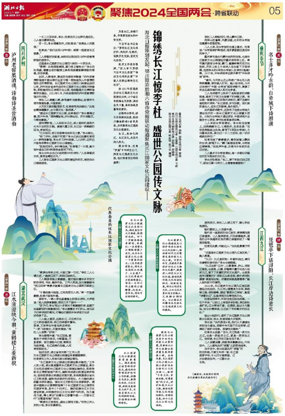 全国两会期间,湖北日报策划发起,联动川赣渝黔湘6省市党报,共同聚焦长江国家文化公园建设。