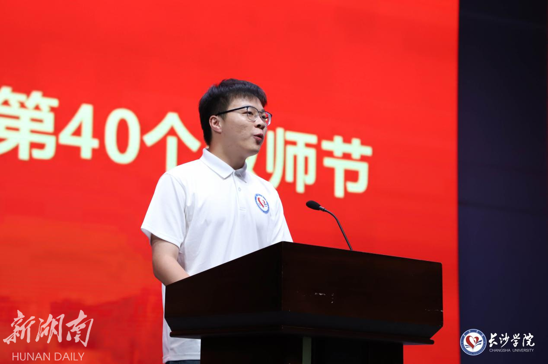 经济与管理学院2021级物流管理专业杜松霖代表全体学生向老师们送上了真挚的节日祝福,表示将为强国建设、民族复兴作出青年一代应有的贡献;全国高校青教赛三等奖获得者、马栏山新媒体学院教师周阿红,荣休教师代表赵小燕讲述了自己在教学科研、教书育人、管理服务中的深刻感悟;经济与管理学院陈智博士作为新进教师代表,表示将尽快适应新角色、新要求,坚守“四有好老师”的思想行动原则,为学校贡献更大的“新进”力量。随后,49名新进教师进行了庄严的入职宣誓。