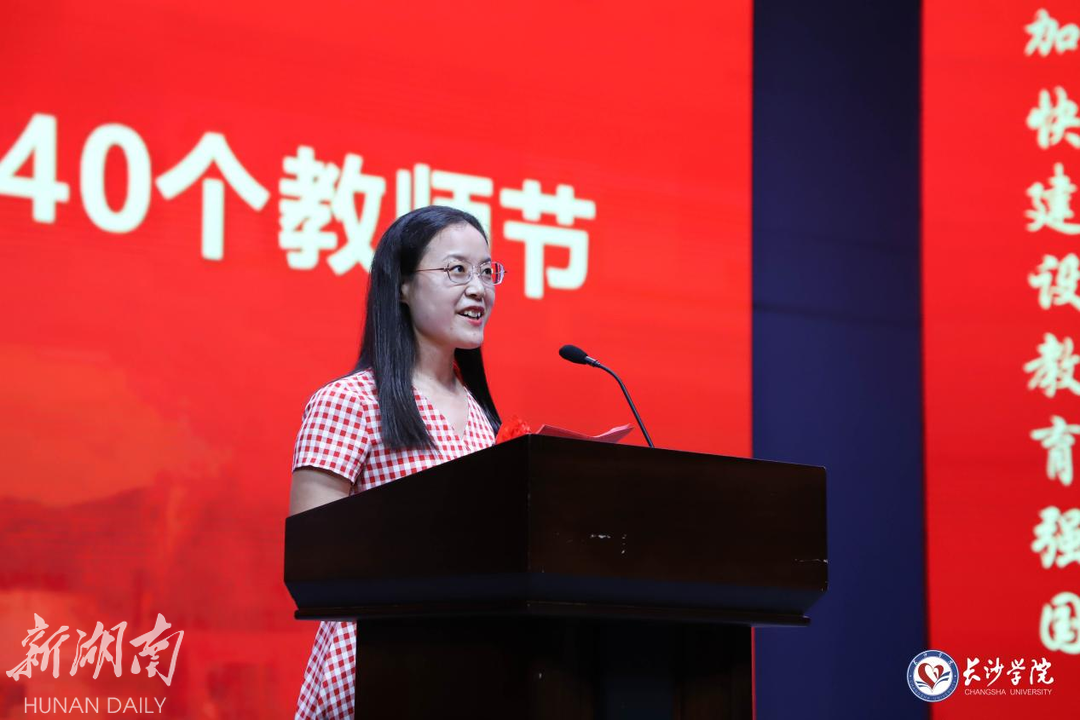 经济与管理学院2021级物流管理专业杜松霖代表全体学生向老师们送上了真挚的节日祝福,表示将为强国建设、民族复兴作出青年一代应有的贡献;全国高校青教赛三等奖获得者、马栏山新媒体学院教师周阿红,荣休教师代表赵小燕讲述了自己在教学科研、教书育人、管理服务中的深刻感悟;经济与管理学院陈智博士作为新进教师代表,表示将尽快适应新角色、新要求,坚守“四有好老师”的思想行动原则,为学校贡献更大的“新进”力量。随后,49名新进教师进行了庄严的入职宣誓。