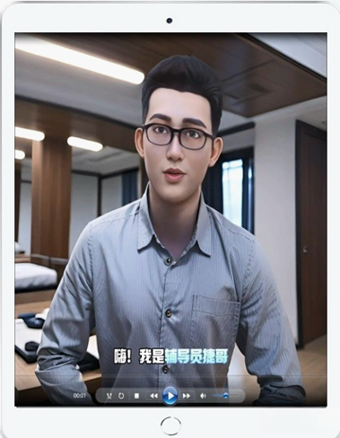 而法学院的AI辅导员就是以大家熟悉的“捷哥”为原型设计,除了文字交互,谭敏捷还上传自己的照片,生成了卡通的数字人主播,同时将原创网文转化为生动视频。
