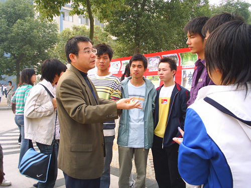 为贯彻十七大精神、创建和谐社会,11月15日,土木系07级工程管理二班在维智园旁举行了以"手牵手,心连心,人人环保,和谐社会"为主题的环保宣传活动。校党委副书记、副院长李云龙教授,土木工程系工程管理二班班主任谢立辉教授,土木工程系学生会全体干部参加了此次活动。