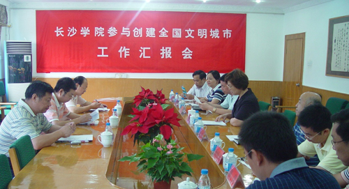 为迎接中央文明委对长沙市申报全国文明城市的全面考察,省教育工委组织专家组对长沙市内31所普通高等学校进行交叉检查。9月11日上午,遵照省教育工委的统一部署,湖南师范大学纪委书记周俊武一行3人来我校督察指导文明创建工作。督查组在办公楼二会议室听取了校党委书记李咏芳关于我校参与创建全国文明城市工作的汇报,并深入校园进行实地考察。校领导李咏芳、宋达、雍正海及相关处室负责人参加了汇报会,李咏芳代表学校作汇报。