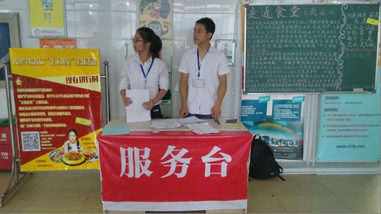"民以食为天",食堂饭菜向来是学生吐槽最多的,为了畅通学生与学校沟通交流的渠道,有效维护学生权益,在相关部门努力下,校学生会成立了学生权益维护部。他们组织的第一个活动就是"走近食堂",了解他们吐槽最多的饭菜的生产过程。活动前期,学生权益维护部通过校学生会微信公众号"hello长大"推送图文消息,并通过海报、宣传单页、悬挂横幅标语等多种方式宣传活动具体内容。同时,在学校五个学生食堂里统一布置服务台,增添公示栏、失物招领架、意见箱等,提升食堂的服务质量。活动期间,校学生会抽调九十余名干事进行文明督导,维护就餐秩序,劝导同学回收餐具,保持食堂整洁卫生。