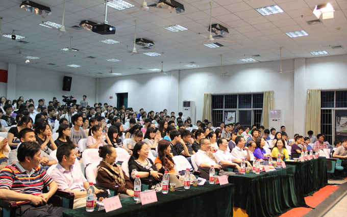 李云龙致辞。他对东来阁讲坛的举办表示热烈的祝贺。他指出,东来阁讲坛已经走过七个年头,现已成为省级校园文化建设项目,值得我们继续传承和发扬其精华。我校学生应从书中读出韵味,读出品味,充分挖掘中国传统文化中的内涵,并将自己的理念、信念与优良的传统文化相融合。