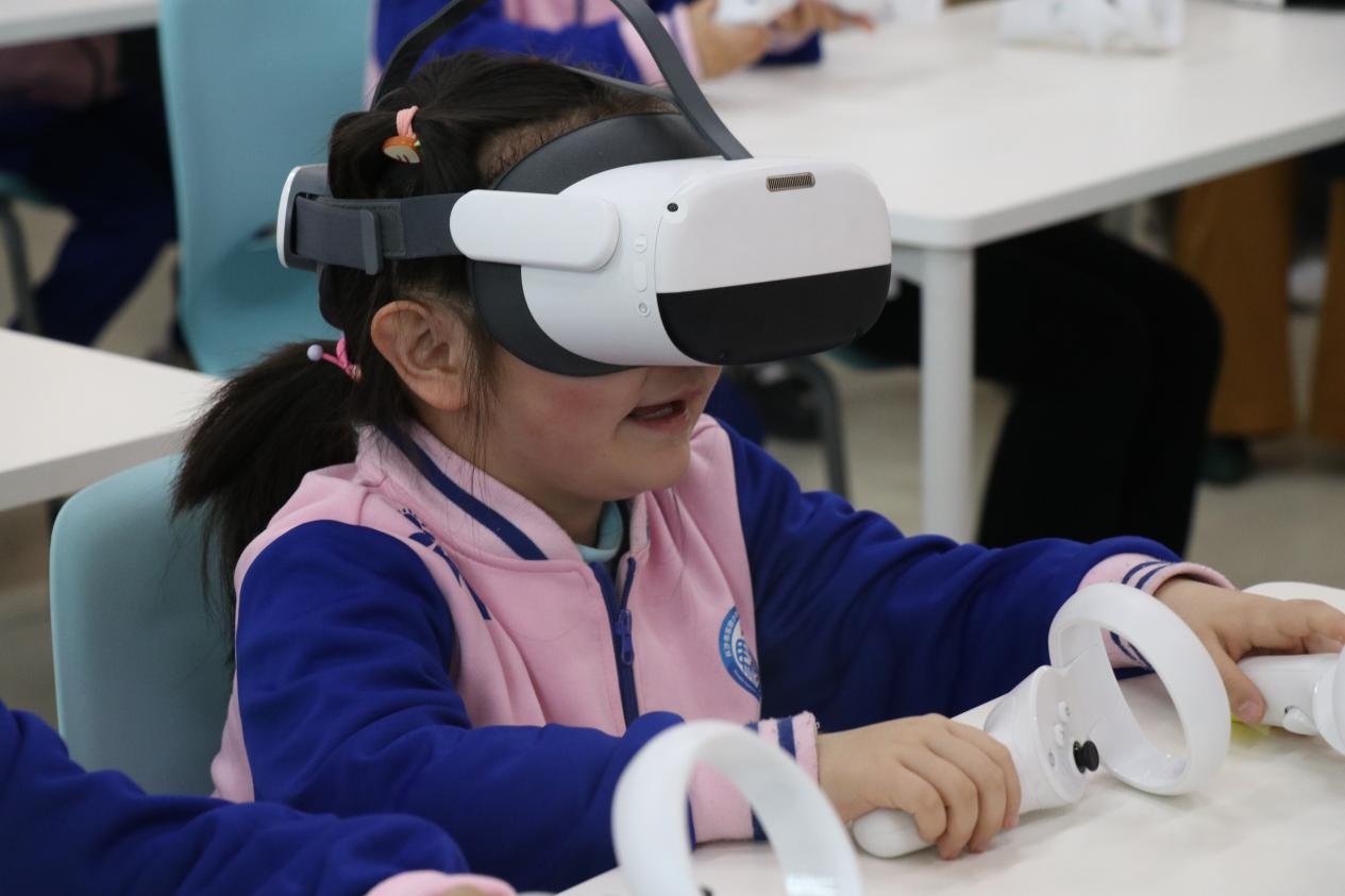 活动当天,艺术设计学院师生和湖南云上栏山数据服务有限公司还来到长沙市实验小学马栏山文创学校。近百名一年级的小学生分批戴上VR体验设备,在志愿者的指导下体验了VR雷锋数字展馆,沉浸式学习了解雷锋同志生平事迹。充满科技感的参观学习引发了小朋友们极大的好奇心,他们在参观中寻找雷锋日记,打卡学习标记,切身感受雷锋精神。