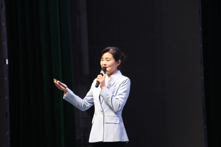 张颖深情讲述——“以青春之名 书时代答卷”。她以“青春是什么?”向师生发问,以“毛家三兄弟”“金属物理学家陈能宽”“以青春定格的雷锋”“95后全国人大代表小砌匠邹彬”四段感人肺腑的故事,讲述了新时代青年应该如何“以理想标注青春的高度”“以奋斗开拓青春的疆域”“以奉献淬炼青春的不凡”。她认为,新时代青年生逢其时,重任在肩,既是追梦者,也是圆梦人。她呼吁,广大新时代青年要有理想、敢担当、能吃苦、肯奋斗,让“青春”在全面建设社会主义现代化国家的火热实践中绽放绚丽之花。