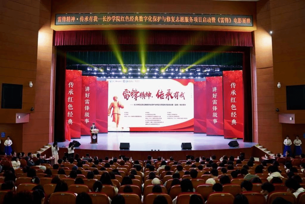 今年是毛泽东等老一辈革命家为雷锋同志题词六十周年。3月5日上午,由我校与马栏山(长沙)视频文创园管理委员会主办,长沙学院艺术设计学院等单位联合承办的“马栏山大讲堂”特别主题活动之“雷锋精神 传承有我”—长沙学院红色经典数字化保护与修复志愿服务项目启动暨《雷锋》展映活动在学生活动中心举行。马栏山视频文创园党工委书记邹犇淼,党工委委员、管委会副主任胡朝晖,学校党委书记杨小云,党委委员、副校长曾广胜,党委委员、组织统战部部长、马栏山新媒体学院党总支书记何利华,党政办、宣传部、教务处、校团委、艺术设计学院和马栏山新媒体学院的主要负责人以及马栏山文创园管委会相关局室同志和园区企业嘉宾及学校师生代表近600人出席活动。