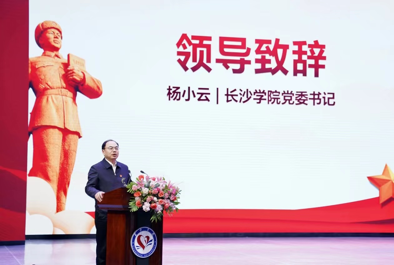 杨小云发表了热情洋溢的致辞,他对马栏山(长沙)视频文创园一直以来给予学校的关心和支持表示感谢。他表示,长沙学院深耕红色经典保护与修复,成立红色经典数字化保护与修复志愿服务实践团,是学校落实习近平总书记考察马栏山(长沙)视频文创园时重要指示精神的具体举措,进一步深化了产教融合、校政企合作。他要求新时代的长大青年要牢牢把握雷锋精神的本质特征和时代内涵,继续秉持雷锋同志为人民服务的初心,持之以恒地开展学雷锋的志愿服务活动,用生动的实践活动诠释雷锋精神,把雷锋精神代代传承下去。