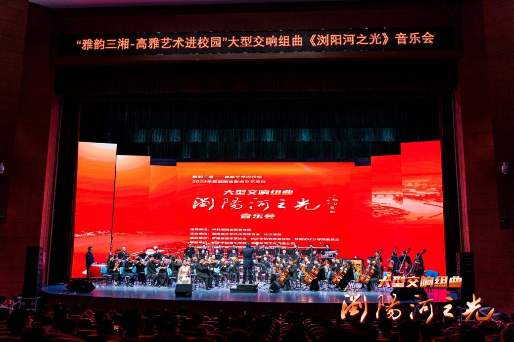 由湖南省文联推出的大型交响组曲《浏阳河之光》于2023年2月10日在湖南大剧院首演大获成功,得到各界好评,被列入湖南省2023年重点文艺项目。根据领导和专家意见,省文联组织力量对作品进行了认真打磨和提升,调整完善后的这部交响作品被湖南省委宣传部纳入“雅韵三湘——高雅艺术进校园”巡演计划。