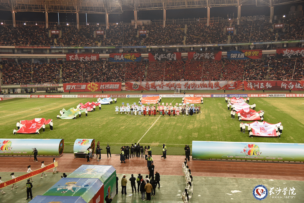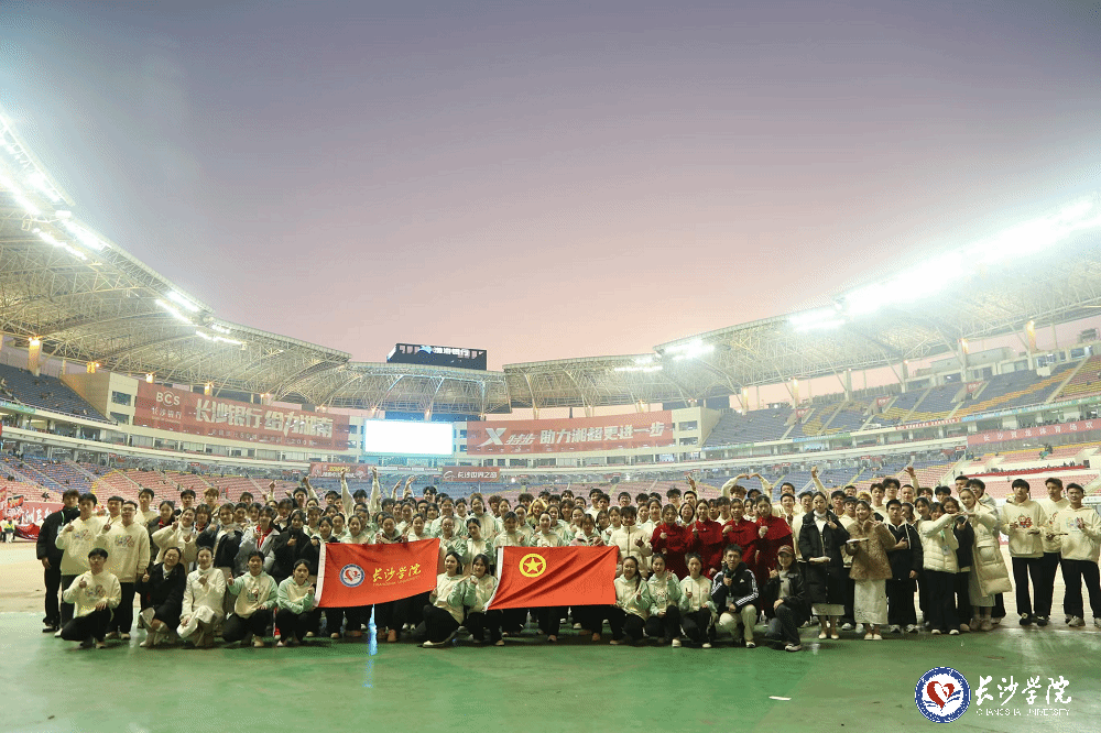 12月14日,湖南省重点打造的文旅体融合品牌赛事“湘超联赛”——四分之一决赛长沙主场对阵岳阳的赛程在贺龙体育馆热血开赛。我校精准对接组委会需求,组建152人的大学生志愿服务团队完成暖场表演——不仅稳稳举起印有八强队标识的巨型球衣,还托举起巨型湘绣作品,将千年非遗古韵与青春活力完美融合,成为体育场上一道靓丽的风景线。
