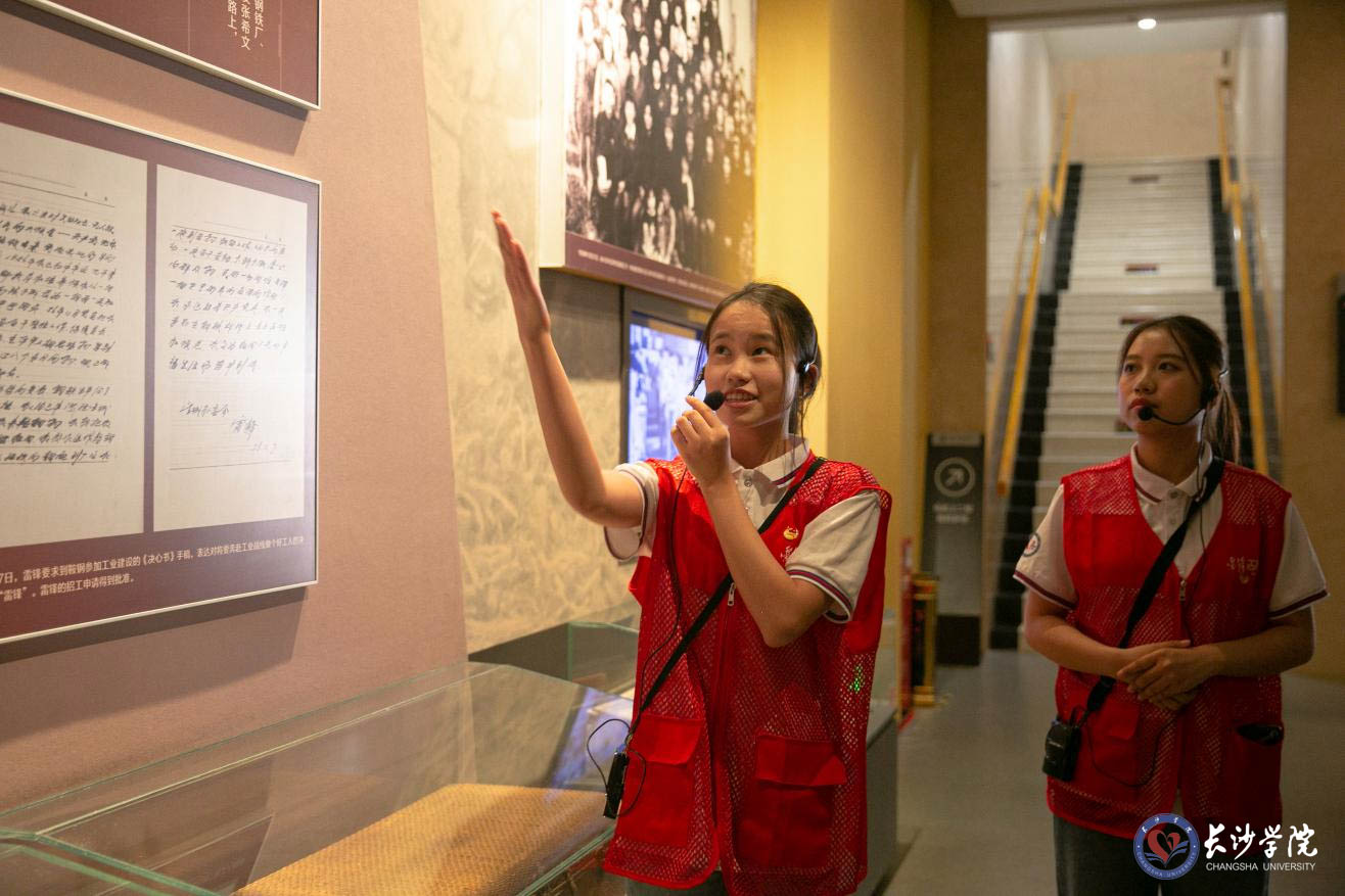 “旧社会经历的磨难让雷锋对新中国充满了期待,1949年夏天,他和长沙人民一起迎来了解放……”外国语学院学生志愿者许子涵经过专业培训,成为了本次研学之旅的双语解说员之一。通过青年人对话青年人的形式,雷锋同志的形象变得鲜活立体,学员们也在不知不觉中被湖湘红色文化浸润心灵。