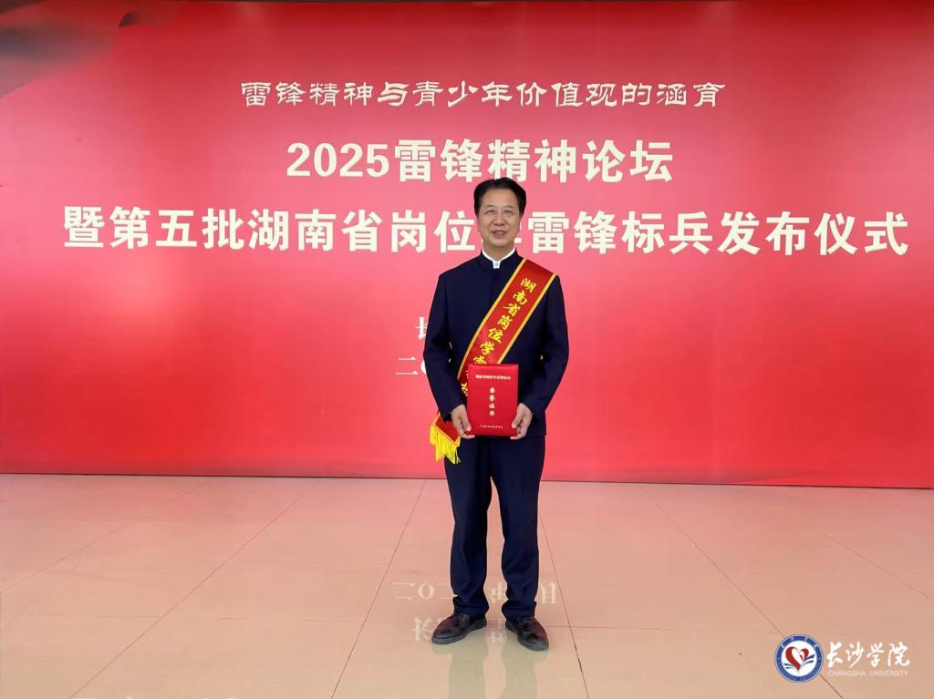 3月1日,2025雷锋精神论坛在长沙望城区举办,现场发布了第五批湖南省岗位学雷锋标兵并为先进典型颁奖。为进一步弘扬雷锋精神,鼓励先进,中共湖南省委宣传部决定,命名30个集体、30名个人为第五批湖南省岗位学雷锋标兵。我校马栏山新媒体学院副院长荣斌教授荣获“湖南省岗位学雷锋标兵”称号。