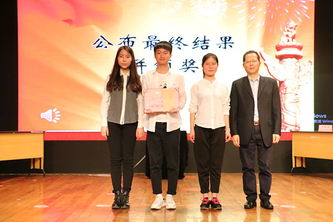 校领导杨兴龙为获得一等奖的团队颁奖
