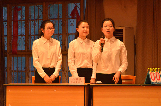 通过预赛与复赛的层层选拔,全校共有12支队伍36名选手进入决赛。决赛由必答题,抢答题,风险题和观众互动四个环节构成;题型涉及选择题、填空题、问答题等形式。比赛四组一轮,共分三轮。第二轮中的 “筑梦工管”队在“激流勇进”中选择了高风险题,他们凭借扎实的党团知识拿下了这个环节的最高分,最终以160分获得比赛的第二名;“不知该怎么称呼你”队因三人默契的配合和丰富的知识储备在比赛中表现出色,他们在每个环节中的得分都领先其它小组,最后以 165分获得比赛第一名。在观众互动环节中,听音乐猜红歌、微信互动、现场PK题库活跃了现场氛围。经过激烈角逐,“不知该怎么称呼你”队夺得桂冠,“筑梦工管”队和“闪闪红星奋进”队获得亚军。