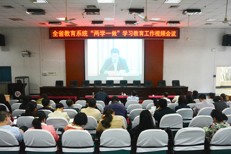 5月10日下午,2016年全省教育系统“两学一做”学习教育工作视频会议召开,按照省教育厅的要求,我校全体领导,相关职能部门负责人,各系党总支书记、直属支部书记、附中党委书记、湖南省外贸职业学院的相关同志在致远楼学术报告厅视频会议分会场参加了会议。