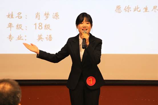比赛现场,经过各二级学院的初步选拔脱颖而出的11名选手围绕“仁慈友善,感恩尚善”的主题,结合生活体炼分享感悟,交流思想。