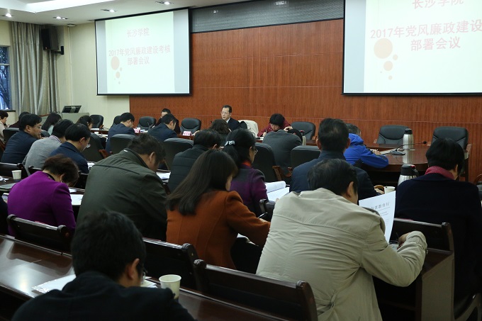 会前,学校党委印发了《关于开展二级院部、职能部门、教辅部门、附属中学落实党风廉政建设主体责任情况考核的通知》(长大党〔2017〕90号)。会议就2017年党风廉政建设考核有关事项作了具体部署,指出,今年的党风廉政建设考核将坚持以下工作原则:聚焦党风廉政建设主题;信息系统与实地检查相结合;定性评价与定量考核相结合;突出考核重点、强化考核实效;用好日常监督、再监督再检查成果。会议还就重点事项廉政风险防控再监督再检查、职能部门日常监督等工作进行了安排。