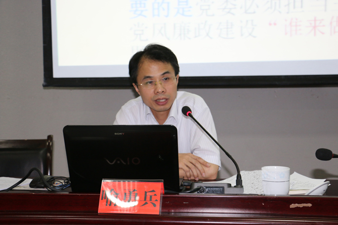 长沙市纪委调研法规室主任喻勇兵作《深入推进党风廉政建设和反腐败斗争的思想武器和行动指南》专题辅导报告