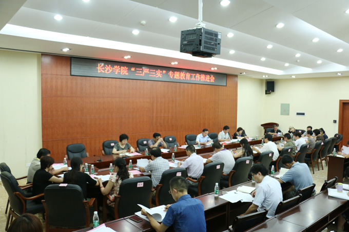 9月11日上午,我校在图书馆一楼会议室召开"三严三实"专题教育工作推进会。会议由副院长屈林岩主持。学校有关党务部门负责人、系部党总支书记、直属党支部书记、附中党委书记、机关教辅部门专题教育学习研讨牵头联系人、督导员参加会议。