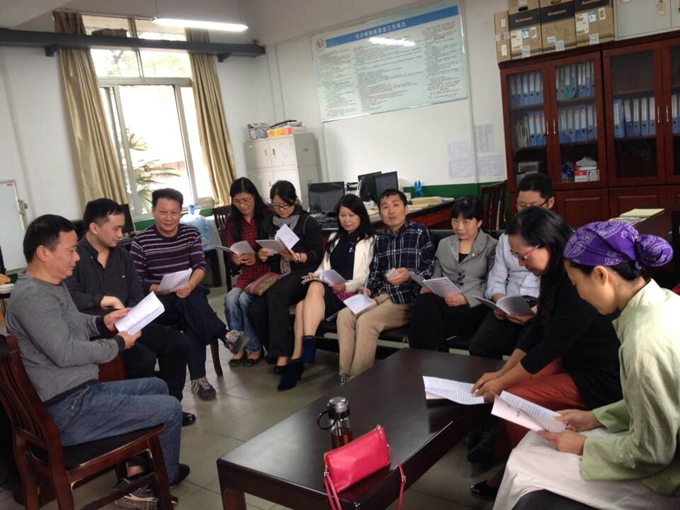 会上,教师们积极发表自己对近期工作的感悟以及对以后工作的规划。随后,参会人员按教研室分组学习了《长沙学院师德师风建设学习资料》。