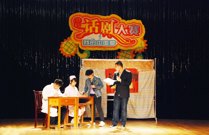 6月6日晚,我校第三届"我的中国梦"话剧大赛在教师与学生活动中心精彩上演。本次活动由校团委主办,外语系承办。外语系党总支书记李益,中文系、生环系和基础学院的学生辅导员和教师代表观摩了比赛。外语系党总支书记李益致词,他说:"中国梦是党对我们祖国、社会、个人的期待,希望通过此次大赛,全面提高同学们的综合素质,更好地理解并且实现中国梦。"