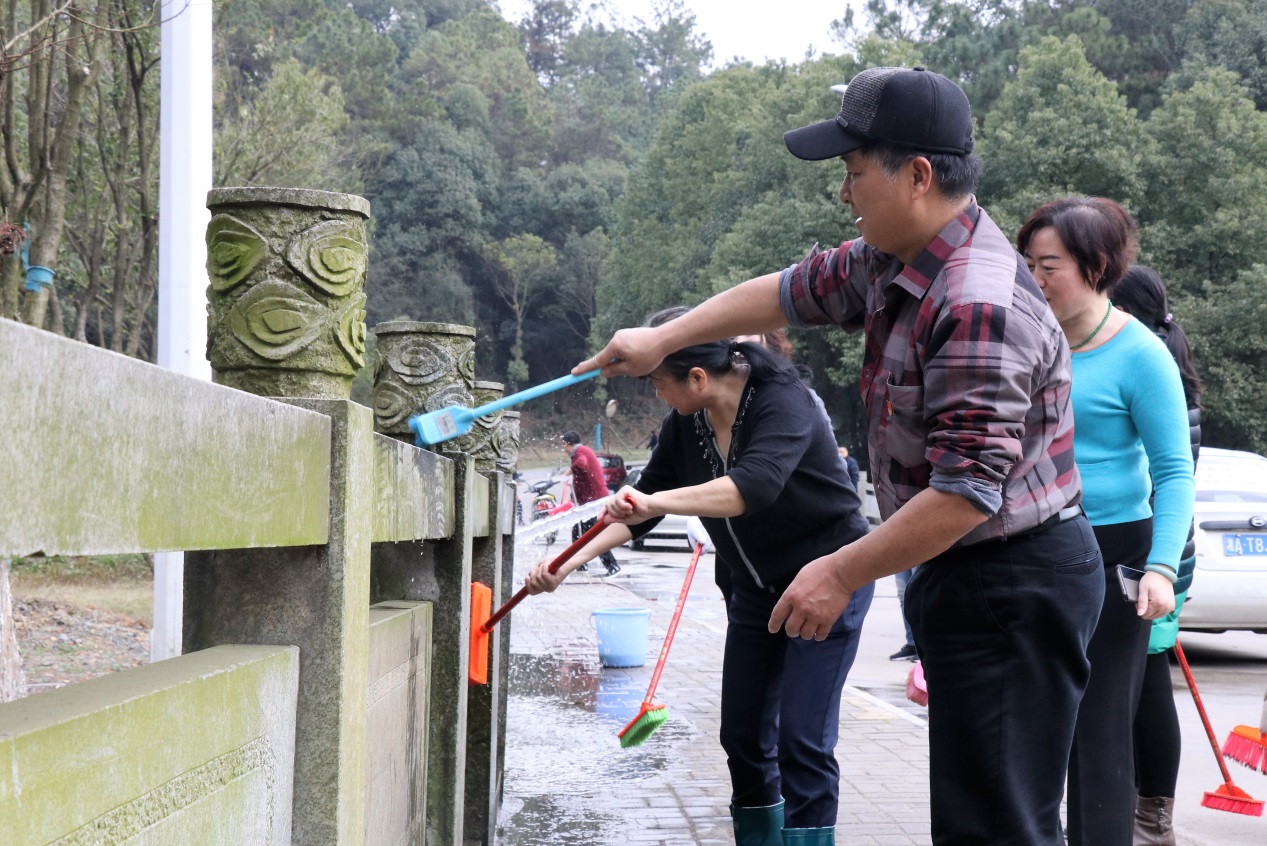 同志们迎着春日暖阳,自带刷子、水桶等清洁工具对学校龙潭湖北路坝两旁的青石护栏进行清刷。大家从护栏上方顺着底座擦洗,连护栏的凹槽处都清洗得仔仔细细,让护栏死角的顽固污渍无处藏身,把近期因雨水过多而长满了青苔的青石护栏清刷得雪白干净,焕然一新。