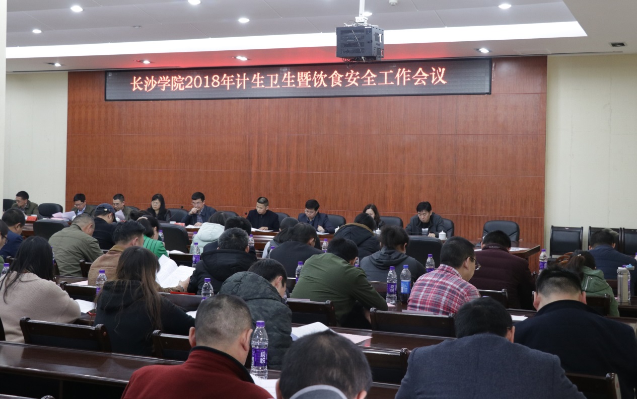 后勤处副处长胡瑞芳作了题为《强化责任管理,狠抓落实为安全》的卫生计生暨饮食安全工作报告。后勤处党总支书记吴桢婧宣读了《关于表彰长沙学院2017年度文明食堂的决定》,授予第一学生食堂、第三学生食堂“长沙学院2017年度文明食堂”荣誉称号。