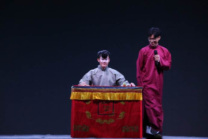 一笑相声社带来节目《四大才子说双簧》,幽默而又出神入化的表演引得观众区欢笑声连连;武术协会的表演者身穿武术服,迈着坚定的步伐走向舞台,他们紧握棍棒,在身子两侧飞快地转动着,精彩的表演博得了观众们的热烈掌声;跆拳道社踏着一声声木板断裂声,打出了一套纯粹霸道的拳法。晚会在演讲与口才励志协会的《畅享现在 拥抱未来》主题演讲落下了帷幕。